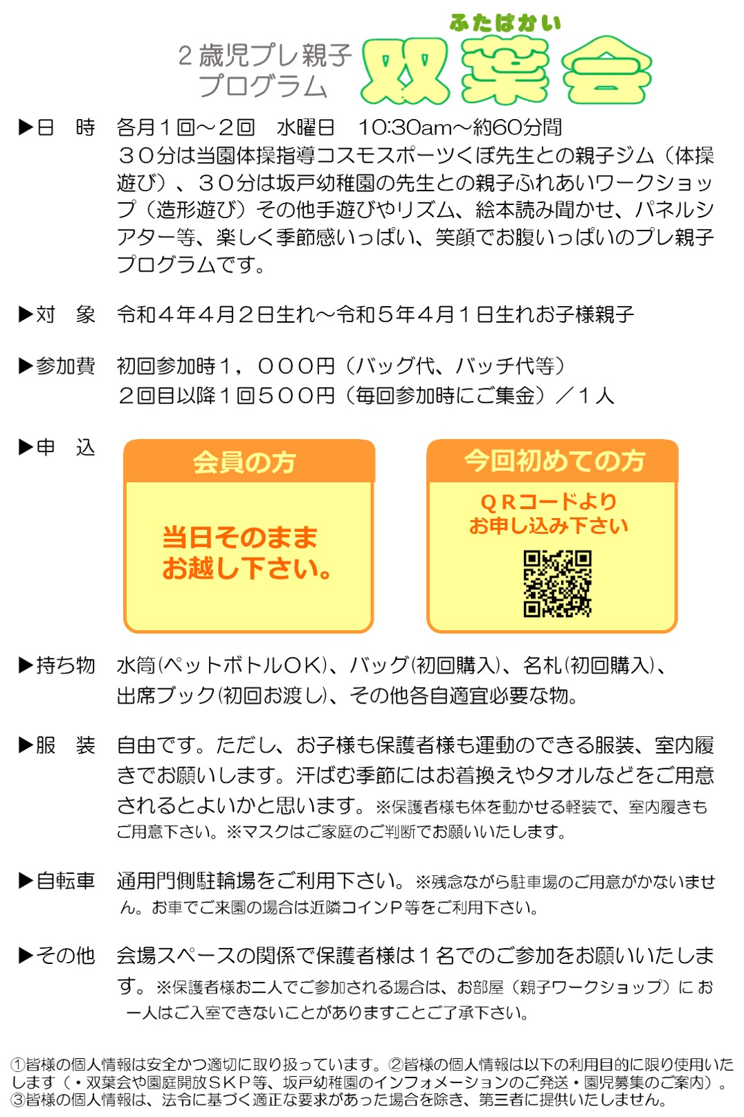 今週水曜日は双葉会❕!親子ジムではどんな運動に挑戦するかな❓親子ワークショッブは松ぼっくりを使って遊ぶよ🎵楽しみにしていてね❕❕※初めてのお子さんで大丈夫。大歓迎です❕❕❕