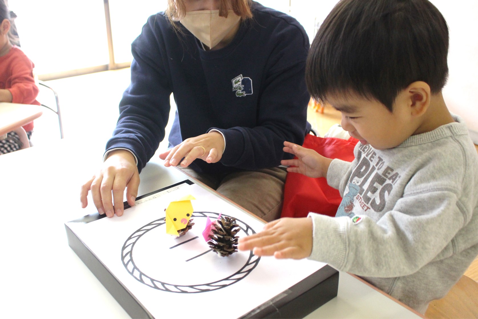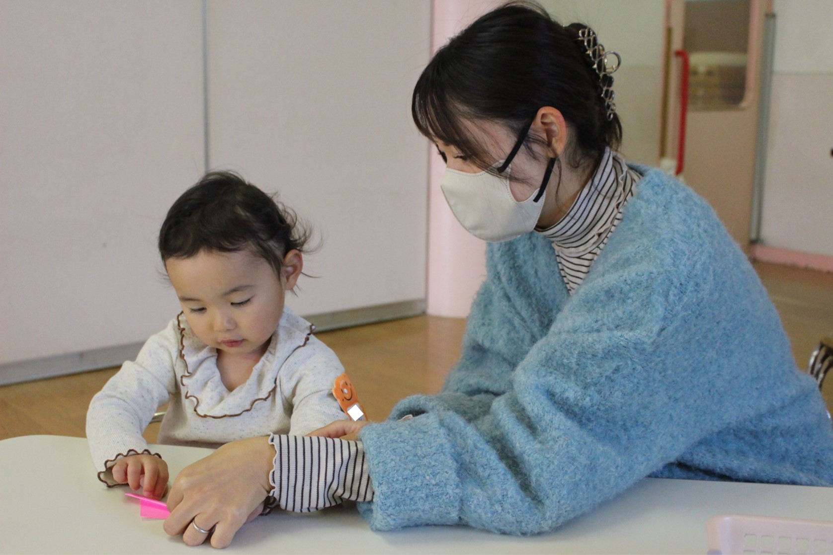 今年6月からスタートした1歳児親子ひろば「そらまめ」。初めての1歳児プログラムでしたので私たちも緊張していましたてが、遊びに来てくれたみんなもきっと最初はドキドキだったのだろうな。でも、今ではもう一つひとつの体操運動に自信を持ってチャレンジしてみたり、上手に指や手を動かして作ってみたり、絵本の世界に入り込んで楽しんでたり、本当に大きくなりましたね。