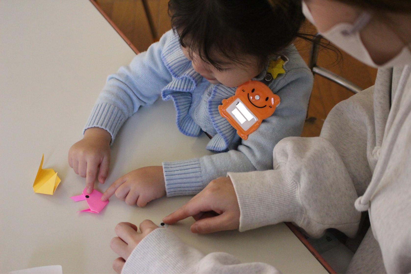 今日は双葉会。折り紙だってもうおてのもの。はて❔何を作っているのかな❓