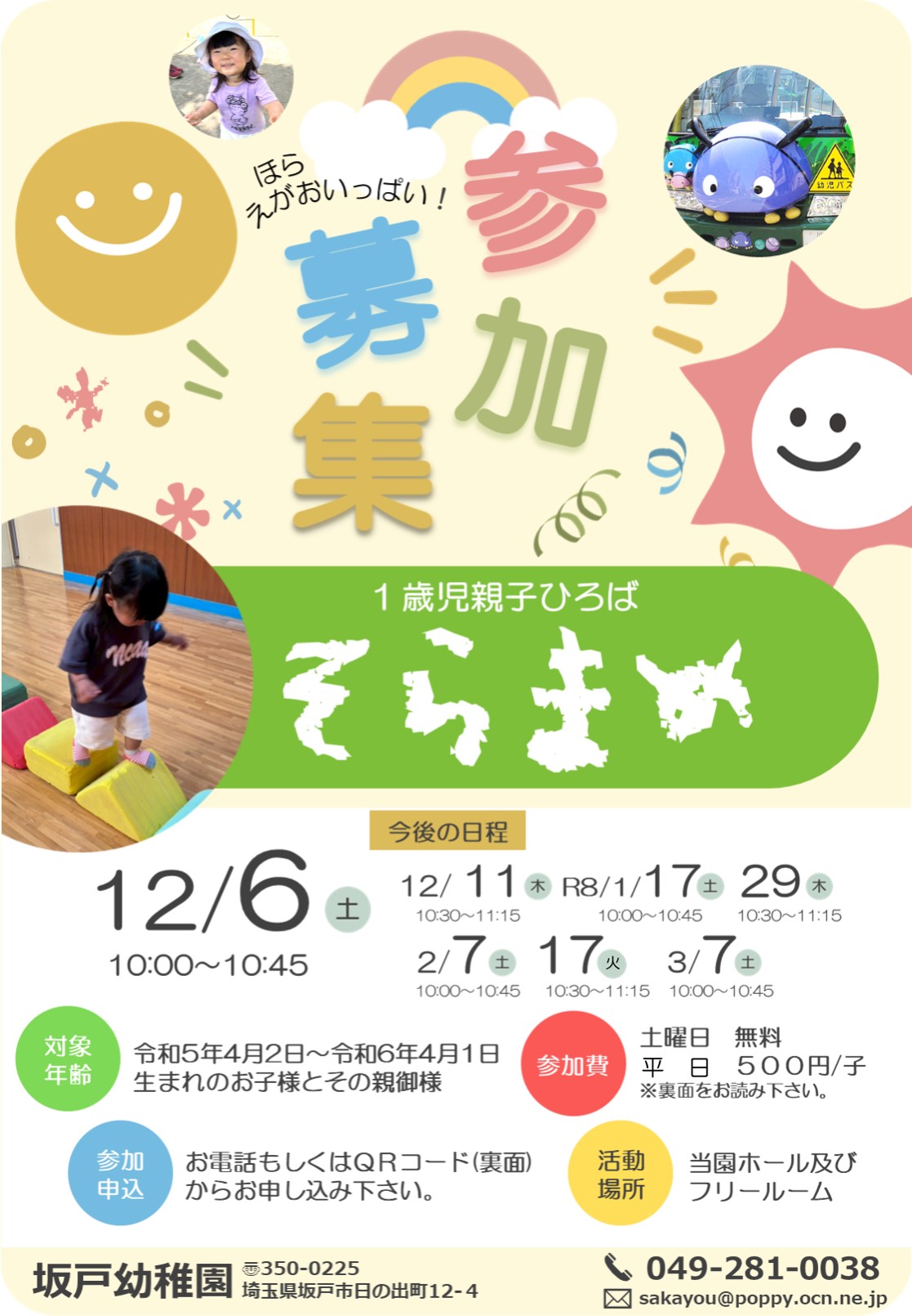 そらまめさんコンニチハ!12月、寒くなってきたけどみんな元気にしてるかな?今度の土曜日はみんなの時間「そらまめ」だよ。体を動かしてぽかぽか暖かくなっちゃおう!遊びに来てね!!